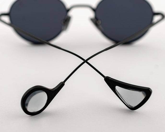 TITANIUM FRAME WITH MAGNIFYING LENSES ON THE EARPIECE, MADE IN ITALY